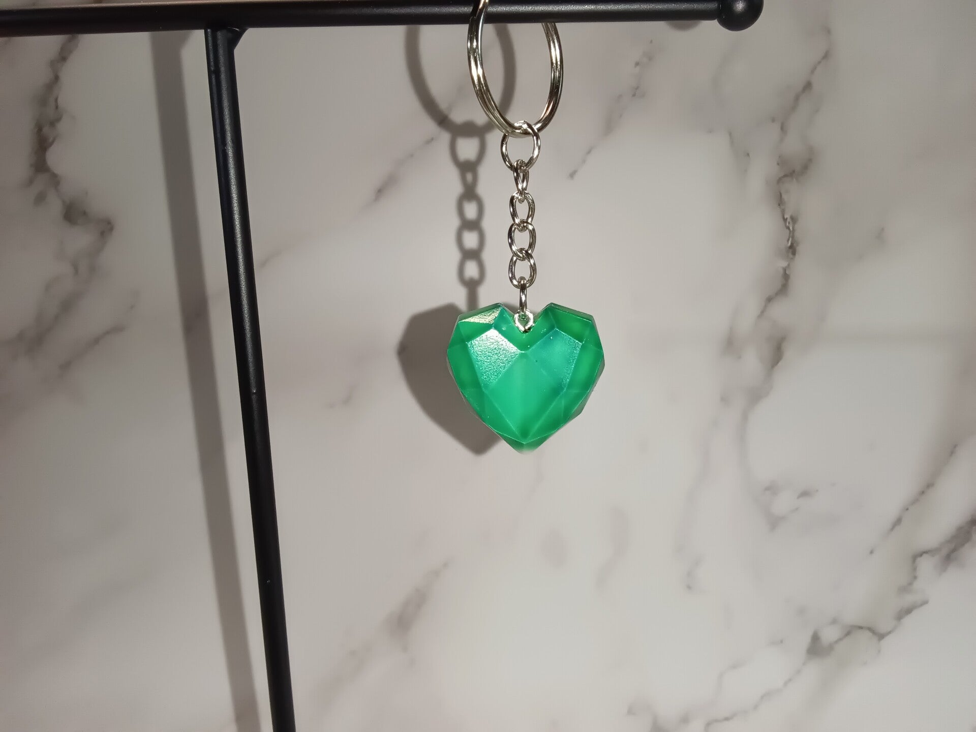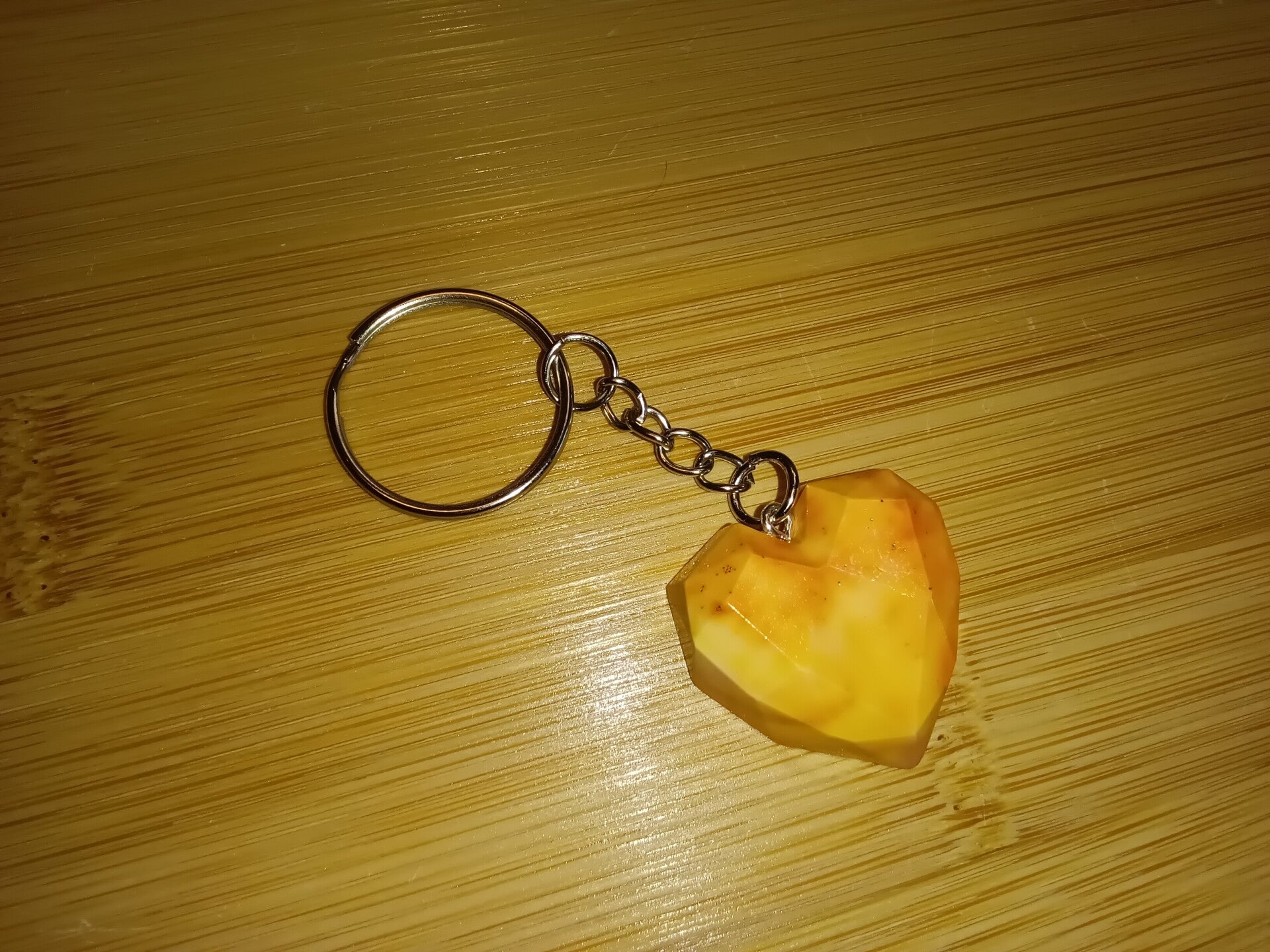 Handgemachter Herz Schlüsselanhänger, aus Grießpulver und Lebensmittelfarbe, überzogen mit Klarlack.
