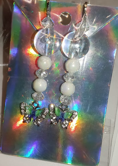 Handgemachte Clip Ohrringe Weiß/Transparent mit niedlichen Schmetterlingen. Sie passen gut zu der Halskette "Halskette Sonne".